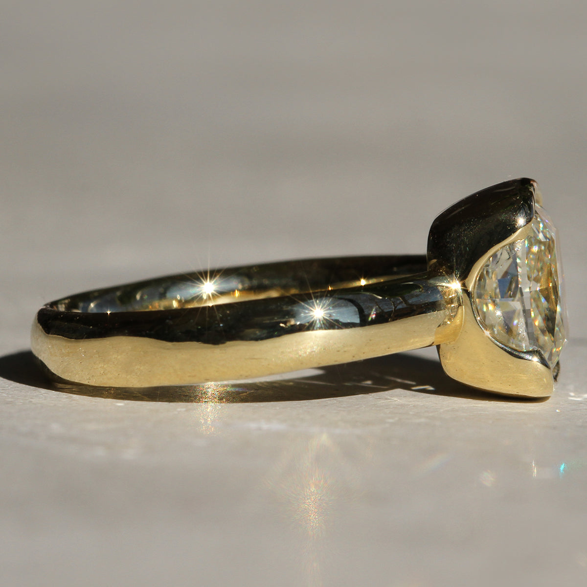 With our "oval" band rounded on both the interior and exterior, plus a low-set bezel, this ring is made to be comfortably worn and loved every day. (The "oval" band style is uniform all the way around.)